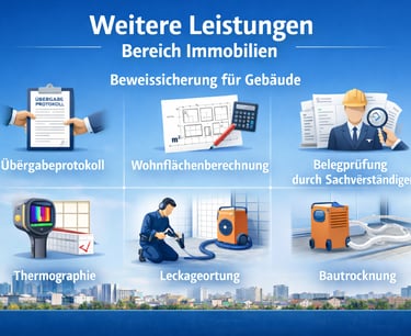 Auf dieser Grundlage erstellen wir sachliche, nachvollziehbare und DIN-konforme Gutachten, die als verlässliche Entscheidungsgrundlage für Sanierungen, Versicherungsfälle, Kaufentscheidungen oder rechtliche Fragestellungen dienen.